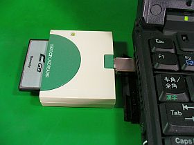 (しかし、他の機種では、この横幅が邪魔になって差し込めないものもあるので、その時には、他のアダプタ/リーダライタを援用!)