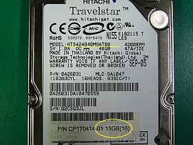 ところが、帰りの電車の中で、“携帯代わり”(笑)に、これらを眺めていたら、15GBの方のモデル名が「HTS424040M9AT00」で、その下に40GBの文字が見えるではありませんか!
