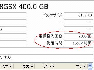 実情は、SMART警告が出ていて、この先の寿命も短いはずだから、即刻廃棄すべし!という代物。(左写真<クリック>)