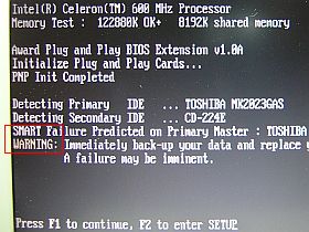 この警告表示は、BIOSで「SMART モニタリング」を外しておいても出るので、相当致命的なエラーのような気配。(確かに、使えそうに無い不良確定型?ジャンク ですね)