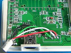 内部の基板を見ると、直付けにお誂え向きのランド[J2A]がありました。ここへ、付属ケーブルを約7cm程の長さに切って接続。