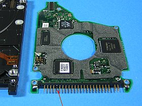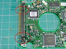 ここで色々考えた。(・・・面倒なので即時廃棄?・・・ピンがGNDなら..?いや違う!・・・古いHDDからコネクタ部だけ取って入替え?・・・いや、類似品から基板ごと入替えか?)