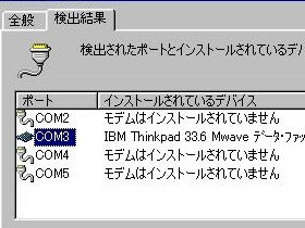 試しに、メルコ製のPCカード・モデム(IGM-PCM56K)を差し込んで、所定のドライバを食わせてやると、上手く動きます。が、それはCOM5ポートにインストールされていました。"そうだ!内蔵モデムも、COM5ポートだった時は、正常に動いてたんだ!"と思い出しました。(おそい!)