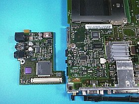 結果、クロックは133MHzから、上手く166MHzにアップできました。しかし、モデムの方はDSP基板も交換してみたのですが、不動状態は変わらずでした。