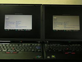 CPUはCeleronだったので、手持ちの表示の暗いR31からPentium III-Mを外して、これに入替えました。全体的には、メイン機候補として合格点です。