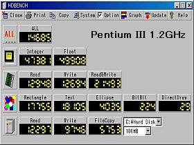 CPUを入れ替えた後と、その前のHDBENCHを採ってみました。(左図&<クリック>)