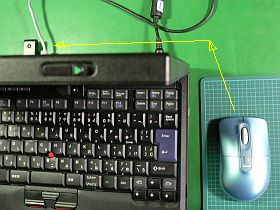 本来は、本体に適合するような無線マウスを使うのが常道なのですが、行き掛かり上、このへなちょこマウスBUFFALO BSMOW01 鉄板上での到達距離約20cm)に、何とか本体側で辻褄を合わせようと四苦八苦/本末転倒!(左写真)
