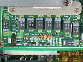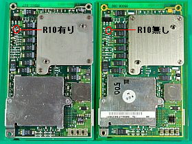 どちらも良く似ていて、違いがよく分かりませんが、細かく見ると、今回改造に関連する箇所で、700MHz品では抵抗R10(抵抗値:約20KΩ)が存在するのに、500MHz品ではオープンでした。