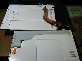 尚、パネル交換は例によって、前枠を下側に抜くようにして外し、両側4本のビスを外して、先にインバータ基板を外しておいて、パネルを少し下に抜き出し裏返す方法にしました。