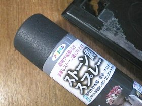 これでは、どうにも気持ちが悪いので、梨地に挑戦!ものは試しと「ストーン調」というスプレーを、ホーム・センターで買って来ました。