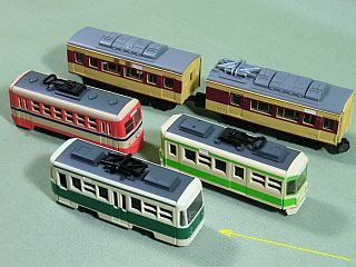 走らせようと思ったBトレインは、先に買っておいたやつが、どうも不格好なので、後で、「路面電車」などを買い足した。(3個\1,573送料・手数料込み)