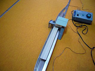 車両は、手で直接、レール上に乗せるのはなかなか難しい。