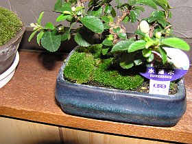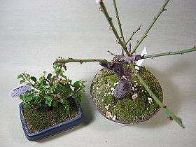 先に「玉牡丹」を買った際、傍に小振りの(孔の開いた/壷状の)苔玉があった。どうやらこれで木の根を包んで小鉢に押し込むらしかった。