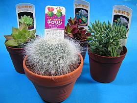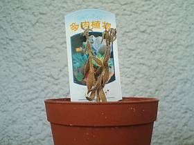 先日、DIY店へ家人の植木棚を買いに行ったついでに、並んでいた小鉢植えサボテンの傍に、妙な説明札があった鉢植えを買って来た。(\298税込み)