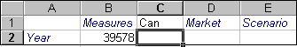 Open a worksheet, connect to the Sample Basic database, and select Essbase > Retrieve. Select Product and replace it with Can by typing Can manually. Click anywhere outside of cell C1 and select Essbase > Retrieve again. Figure Figure 19 displays the results: