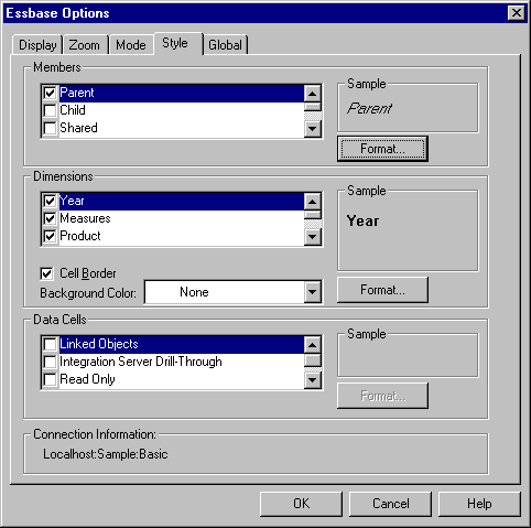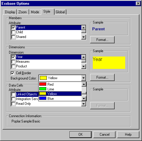 Figure 45. Essbase Options Dialog Box, Style Tab
