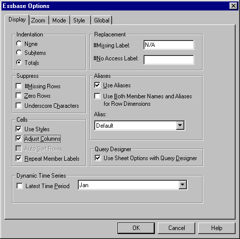 Figure 50. Enabling Aliases in the Essbase Options Display Tab