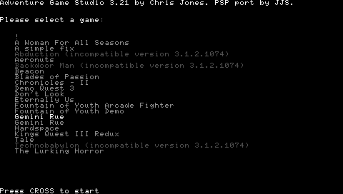 engine to the PlayStation Portable. At the moment games made with AGS version 2.50 or higher and low resolution are supported.