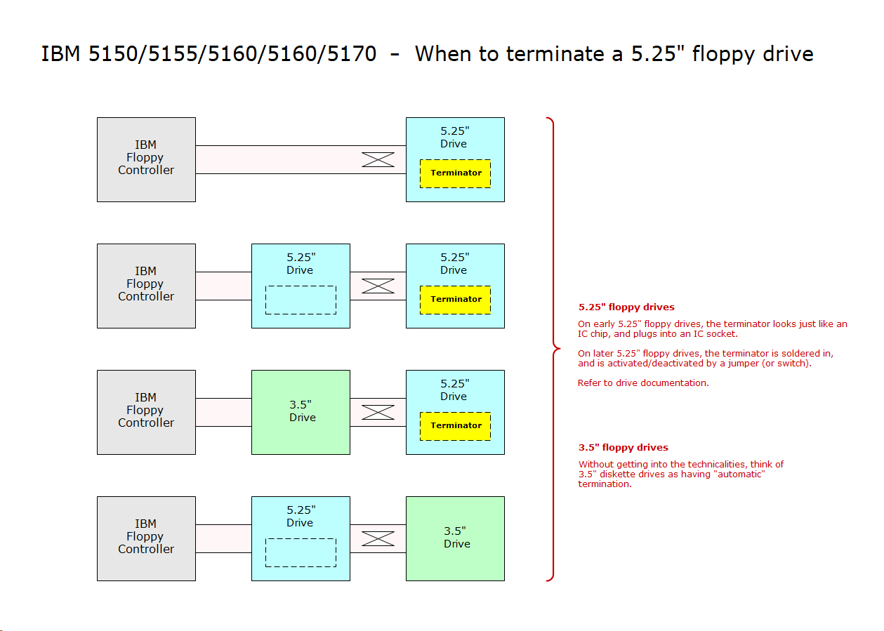 • For 5.25" drives, terminate as appropriate, per the diagram at here.