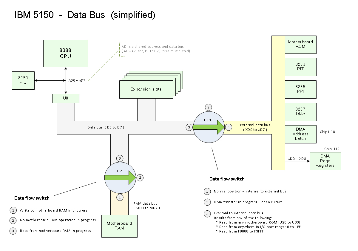 - Certain circuitry instructs U13 to put that data from the external data bus onto the data bus.