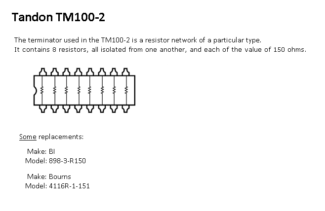 If you need a replacement, the TM100-2's terminator is electrically described at here.