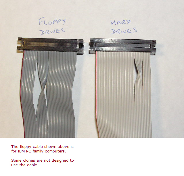 | 601 | 601-Diskette error | Some possible causes: • POST can't find the floppy portion of the IBM Fixed Disk and Diskette Drive Adapter • Wrong type of twisted cable is being used - hard drive type instead of floppy drive type. (photo of difference) • Floppy drive A: - faulty • Floppy drive A: - does not have power to it (either +5V or +12V, or both). • Floppy drive A: - jumpered incorrectly for the 5170 • Floppy drive A: - a make-model that is incompatible with the 5170 • BIOS issue: Are you seeing the 601 after removing the IBM Fixed Disk and Diskette Drive Adapter and substituting it with something else ? There is something in the second and third BIOS revisions of the 5170 that expects the IBM Fixed Disk and Diskette Drive Adapter. The first BIOS revision does not have the issue. |