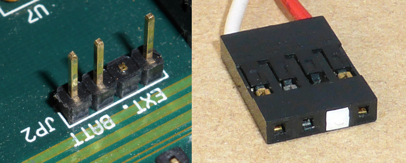 On this type of motherboard, to select the 'internal' battery (i.e. soldered to motherboard), a jumper needs to be placed on two pins of the 'external' battery connector (4-pin Berg).
