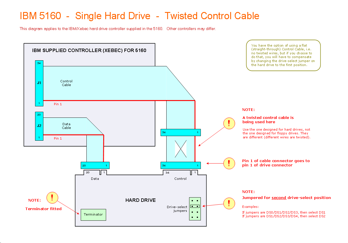Click here to see a cabling diagram for a dual-drive configuration. It is recommended that you first get drive 0 working, then add drive 1 later.