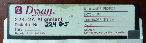 | 224/2A - Alignment Instructions | (5.25" alignment floppy, double sided, 48TPI) (photo of floppy) |