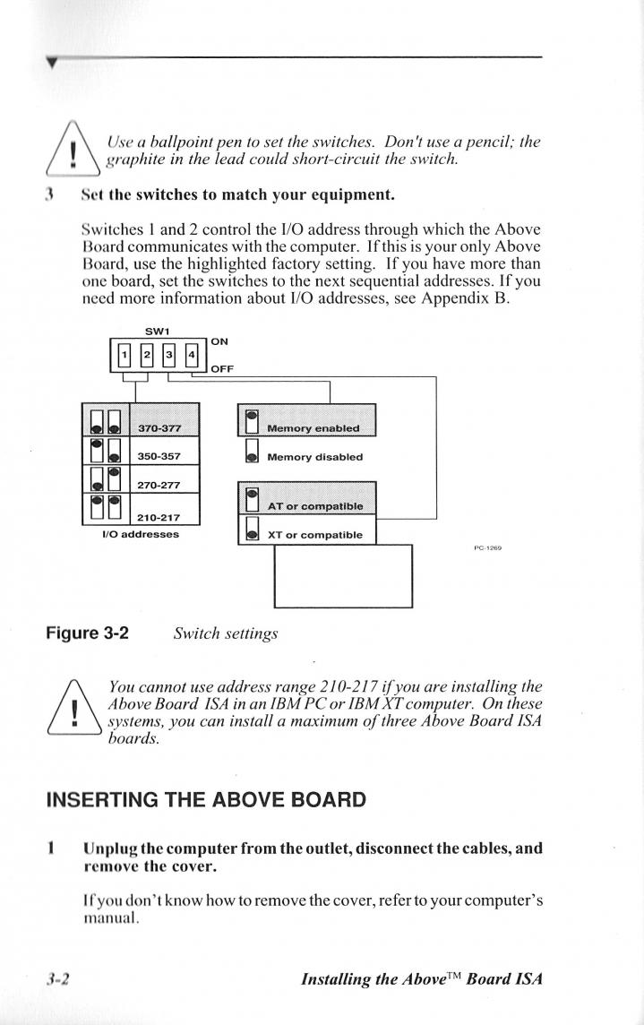 | EGA Wonder 800 - Switch settings | (EGA video card for PC and XT and AT) | |