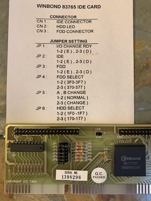 | 83765 IDE card - User's Manual | (16-bit hdd/floppy card) | (source: phonophan at the VCFF) |