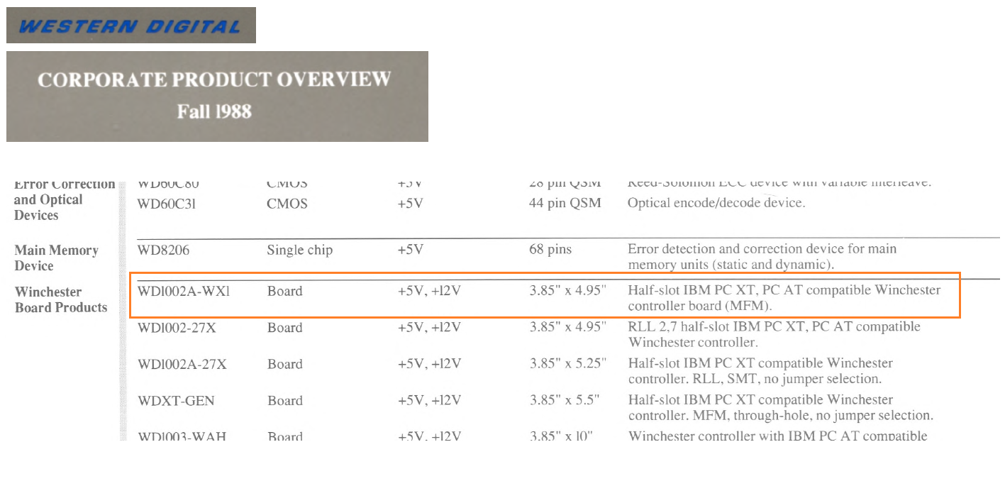 (from Western Digital document: 'Corporate Product Overview, Fall 1988')