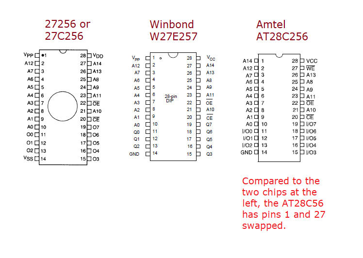 WARNING: The Amtel AT28C256 is NOT a 27C256 equivalent.