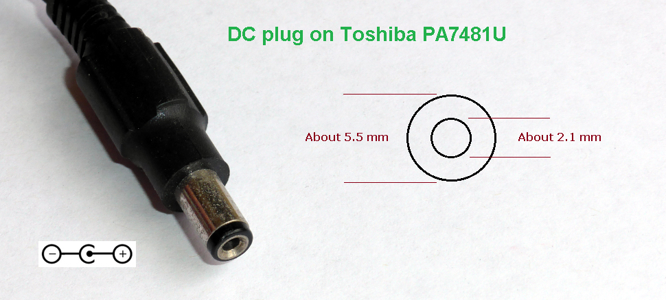 Toshiba T1100  -  Modification for an AC Adapter of 12V DC