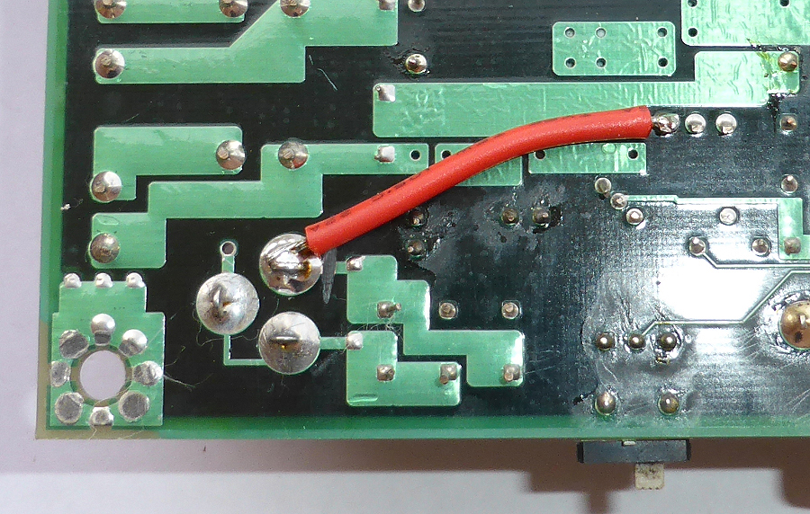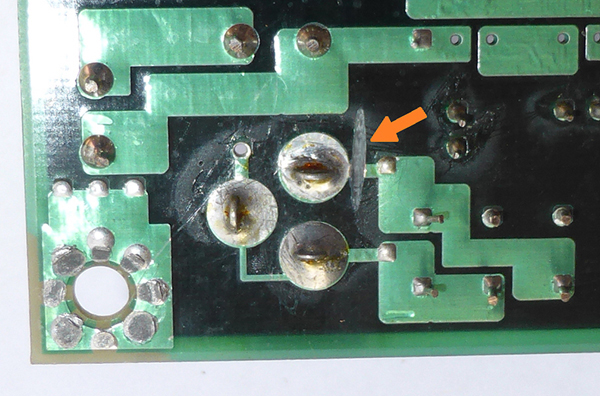 STEP 4:  On the motherboard's solder side, cut the green trace pictured (cut) at here.