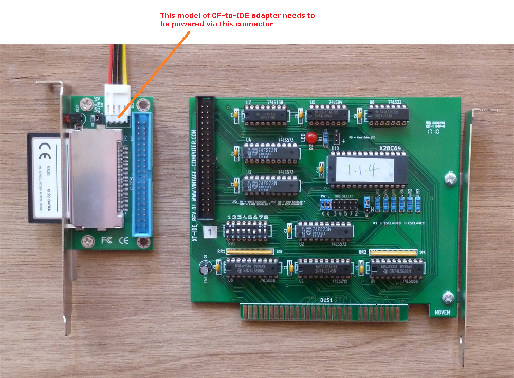 | Symptom | The XT-IDE card recognises some make-model of CF cards but not others. ('recognise' = At power on, the XTIDE Universal BIOS correctlt displays the model number of the CF card.) |