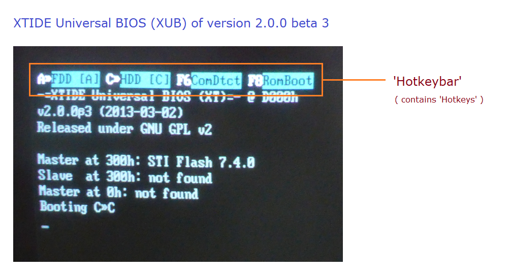 | Cause | The changed boot behaviour is due to the XTIDE Universal BIOS (XUB), and is by design. |