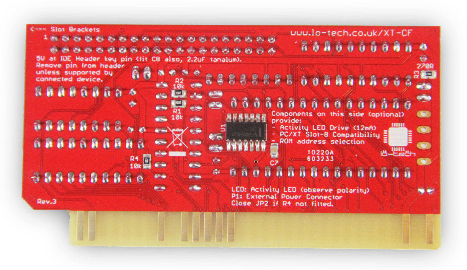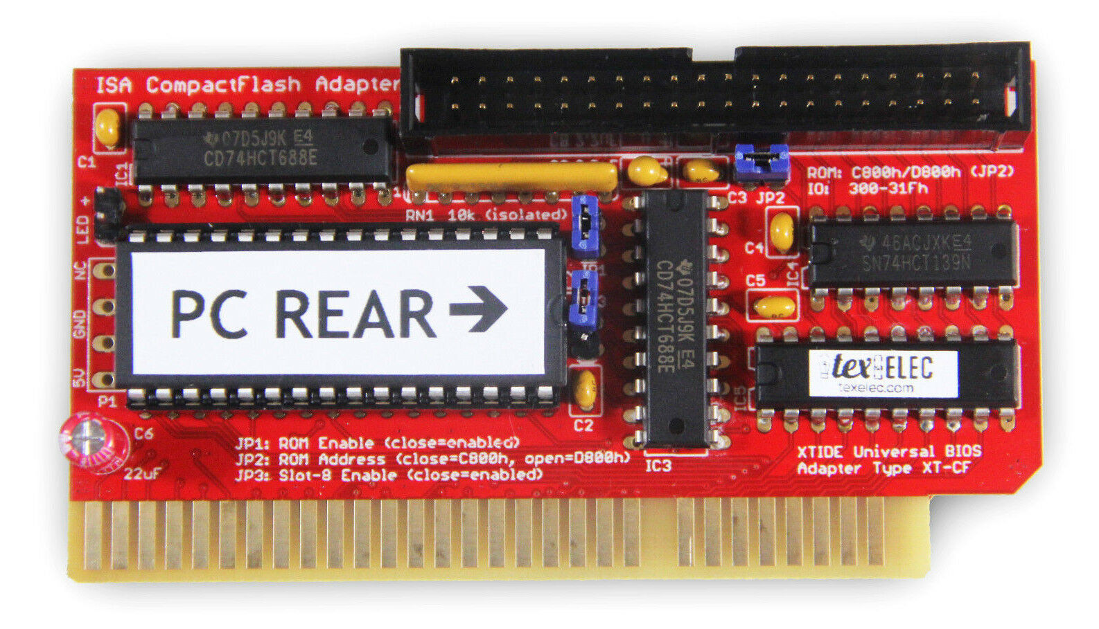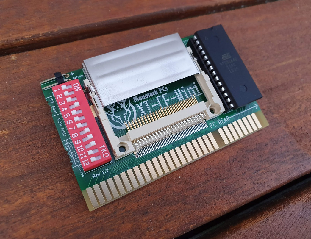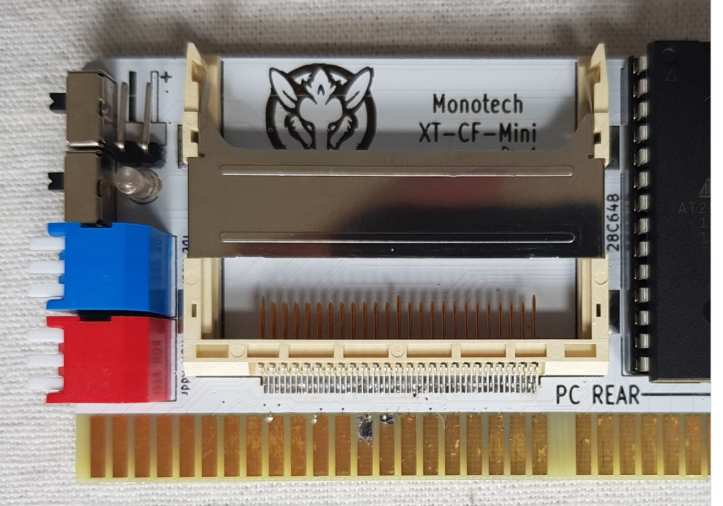 Click on photo for larger view. This is simply a rebranding of the 'Monotech XT-CF-Mini Rev 1.1'. Click here for back. Like for the 'Monotech XT-CF-Mini Rev 1.1', this card requires a CF card that works in 8-bit mode - the vast majority do, but not all. |