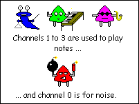 To play a tune, we use channels 1 to 3. The channels are the same in terms of