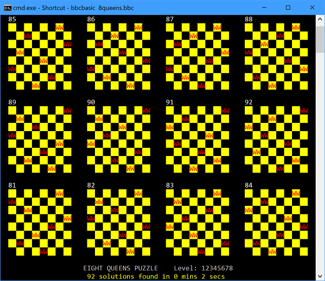 The Console Mode editions take their input from stdin and send their output to stdout so may be run at a regular command prompt or in a client-server context (e.g. through a network or serial connection, or even via the internet). The console/terminal is assumed to be VT-100 compatible, which the great majority are, in which case most of the standard BBC BASIC VDU commands behave as expected (with the exception of graphics commands), although text viewports are not supported. Alternatively these editions may be used in CGI (Common Gateway Interface) applications, or as a shell replacement. Common shell commands may be accessed by prefixing them with a star (*), in the usual BBC BASIC way. Limited program entry and editing capabilities are provided in Immediate Mode by means of the AUTO, DELETE, EDIT, LIST [IF], LISTO, LOAD, NEW, RENUMBER and SAVE commands, but in the case of large programs you are recommended to use either the BBC BASIC for Windows or BBC BASIC for SDL 2.0 IDE. The LOAD command will load a program in internal (tokenised) format or as a plain-text file (line numbers will be added if necessary). A BASIC program may be executed automatically by specifying it as a command-line parameter (it must be in tokenised format) or by giving it the same name as the executable but with a .bbc extension. The Console Mode editions incorporate an assembler for the appropriate CPU (a 64-bit x86 assembler in the case of the Windows, MacOS* and Linux editions, and a 32-bit or 64-bit ARM assembler in the case of the Raspberry Pi editions). You can access Application Program Interface (API) functions from assembler code and from BASIC (using the SYS statement), allowing an experienced programmer to produce sophisticated applications. These editions are entirely free and may be downloaded for the supported platforms as follows :