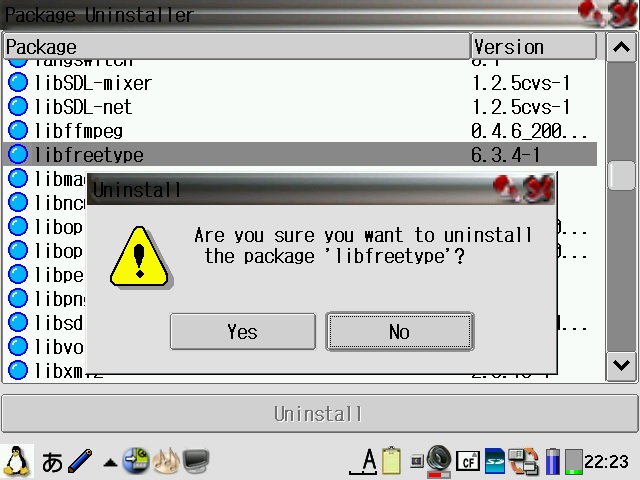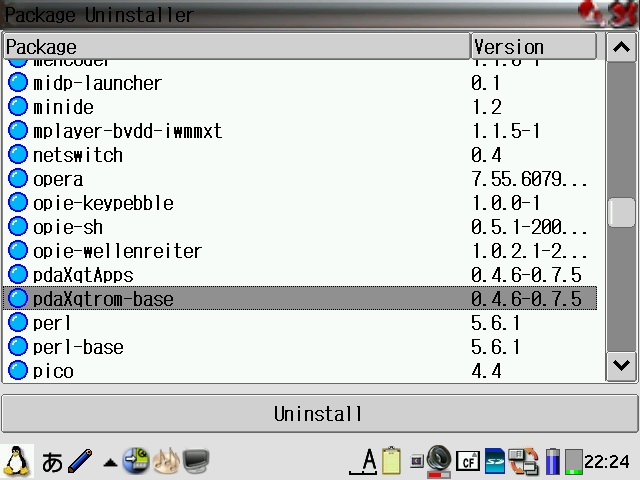 Many more untested packages are available from the pdaXrom X/Qt feed as well as the pdaXrom 1.0.5 feeds on the main pdaXrom site. The pdaXqtrom images are installed as mountable filesystems (cramfs/squashfs). A setup script inside each image will create the required symbolic links and copy files appropriately. If you inadvertantly remove any of the links, you can simply rerun the setup script to recreate them. To uninstall, simply use the Package Manager/Installer tool and uninstall the pdaXqtrom package(s), then unmount the image(s).