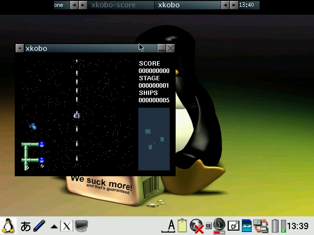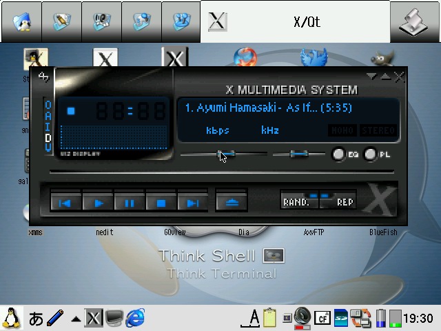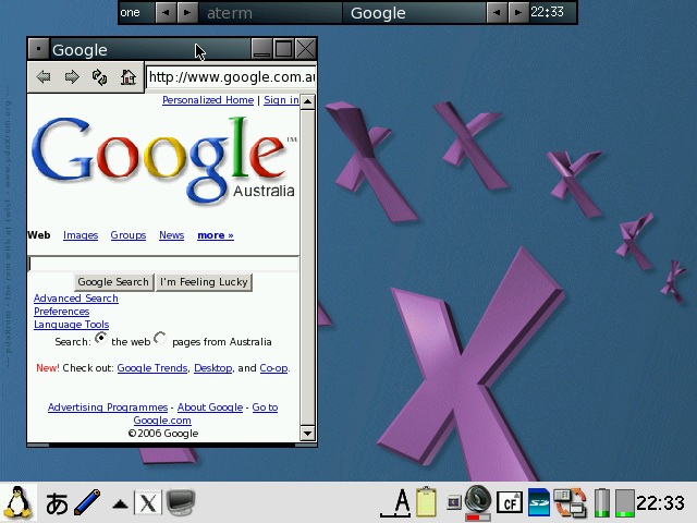 Best viewed on NetFront (640x480) X/Qt super jumbopdaXQtrom 0.8.2The new X/QT super jumbo package is the next generation of X/Qt and is based on existing base X/Qt packages (thanks Takuya Murakami) and the specially compiled X/Qt packages from pdaXrom 1.1.0 beta1 (thanks Sashz!). The goal of this image is to extend Sharp ROM with a mini pdaXrom system running under X/Qt. It has a complete X/Qt runtime that is compatible with packages from the special pdaXrom feed. It also uses the same glib2 and gtk+ library versions as pdaXrom while maintaining compatability with Sharp's older glibc 2.2.2 version. This means that most applications available for pdaXrom will be able to be recompiled and run on pdaXqtrom. A native on-board compiler based on gcc 2.95.3 is also available as a companion tool to compile your own X/Qt applications from your Zaurus without needing a separate machine or setting up a cross tool chain. A java runtime and development environment is also available as an optional add-on as well. However, since pdaXqtrom extends Sharp ROM, and many of its libraries are compiled for compatability rather than speed, it is rather slow in comparison to pdaXrom which is optimised for speed. pdaXqtrom is also limited to the constraints of the old version of Qtopia that Sharp ROM is based on as well as the X/Qt libraries which were not compiled with xscale optimisations. This means that you will be lucky just to get half the speed of pdaXrom since pdaXrom is quite optimised for each class of models, so if speed is what you want, then consider using pdaXrom instead. pdaXqtrom can be optimized a bit more but will never be as fast as pdaXrom since pdaXrom uses the faster soft float instead of the slower hard float which Sharp ROM is using. pdaXqtrom should also work on Cacko since it is a derivative of Sharp ROM. It should work on all clamshell models as well as Tosa. 5x00 models would struggle because of the limited memory and smaller screen size but should work too in a limited fashion (the previous X/Qt jumbo package would be a better choice for 5x00 models since it requires less resources). It is recommended to use a swap file of at least 64MB with pdaXqtrom. You can either manually create and enable a swap file/partition yourself, or use the qtopia-memoryapplet to do it. Cacko already includes a memoryapplet for creating swap files. I have packaged an improved version [qtopia-memoryapplet_1.0.4_arm.ipk] which allows C3x00 models to create the swapfile onto the internal MicroDrive on /hdd3 and also the creation of swapfiles up to 512MB. The pdaXqtrom base image is available as a mountable cramfs and/or squashfs image, as well as a gzipped tarball which can be extracted to an ext2/ext3 filesystem. The default window manager for pdaXqtrom is fluxbox. Alternate window managers can be used also such as icewm. The file /etc/X11/defaultwm specifies which window manager is loaded when X/Qt is started. X/Qt running fluxbox with custom BluePDA theme