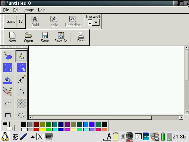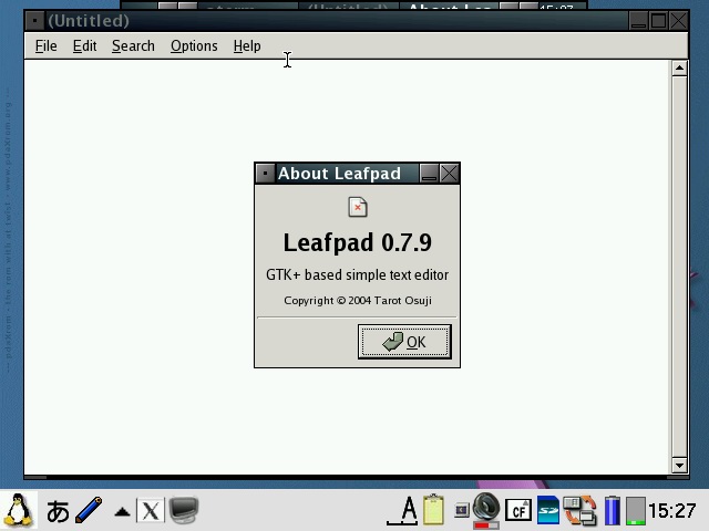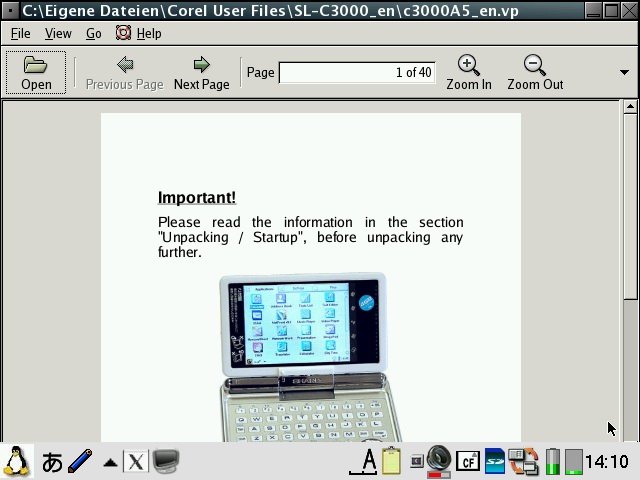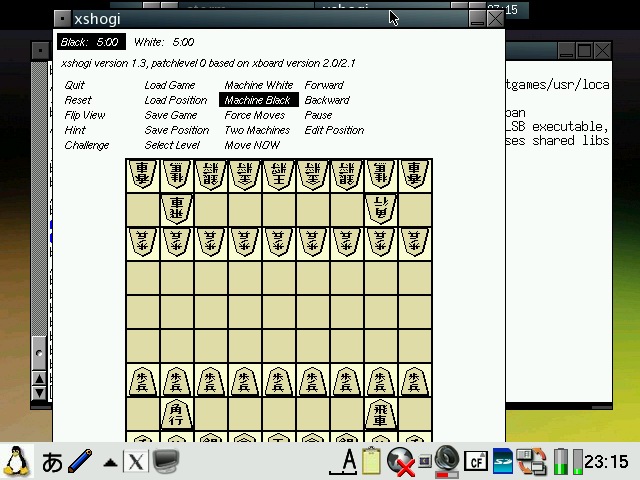 Abiword has been configured to start in 640x480 or 480x640 mode depending on the model and display English even on Zauri with Japanese locales. Abiword uses the system locale to determine what language to display menus in, ie English menu with en locale, Japanese with ja locale. However, since many clamshell models on Sharp ROM use the ja locale with the menus converted to English, the same was required for AbiWord. The file /etc/X11/app-defaults/Abiword.strings contains the text for the menus and is a copy of en-GB.strings for English menus. If you want your menus in another language, then simply replace it with the language file of your choosing. I also compiled aspell and included a dictionary so you also get an English spell checker. Additionally, I also compiled a few plugins for abiword, mainly text converters so you can open additional document types such as OpenOffice, MSWrite and PDF files. I also got printing to a PDF file working partially. Currently it only works with certain fonts, so if the results looks like garbage, try again with another font. Firefox has been enhanced a bit. It originally had a small problem with its own launch script but now it launches itself into a new tab if you launch firefox multiple times when it has already been started. I have also compiled the gplflash plugin so flash animations can be viewed with firefox. A java plugin is also available, but it requires jamvm and classpath (available on the java image) and perl (available on the zgcc image). GQView, xpdf, grisbi, putty and abiword have been recompiled to force them to stick to the 640x480 screen size and not go beyond. Also, most applications have been customised to start in full screen but not covering the bottom menu bar. This has been done for both portrait as well as landscape based models and is managed by FluxBox. I also hacked GTK2 to restrict the window size to 640x480 and 480x640, so hopefully all applications will fit onto the screen. I have tested AbiWord and FireFox and all dialog boxes I could find were correctly sized. However, if there are any oversized windows, then use Alt+n to maximise the window or Alt+arrow keys to move them around. I purposely hacked GTK2 instead of the window manager (fluxbox) which is where it should be fixed. However, since X/Qt can run in rootless mode without a window manager, the window size needs to be controlled higher up in GTK2. A rotate feature which resizes the windows of running applications has also been added and is accessible from the FluxBox menu. StarDict has not been configured with any default dictionaries. You will need to install your own dictionaries into /usr/local/share/stardict/dic. Alternatively, I have created a huge squashfs image with many stardict and qbedic dictionaries as well as the stardict sound files for pronouncing the words in English. You can use that image (dictionaries.squashfs) as well but you will need more than 300MB of space for it. xmms has been hacked to allow it to use more Zauri friendly keys. You can now use the OK and Cancel keys as Play and Stop. Also Up and Down have been reassigned to change tracks and N and M are now used for volume control. The goal was to be able to use the sidekeys on the back of the Zaurus to control xmms just like the MusicPlayer when the display is closed or you are using it in PDA mode (portrait) without access to the keyboard. xmms can play wav, mp3 and mod files and I have also compiled mplayer 1.1pre8 with X11 support so xmms can launch mplayer inside a little gtk window for watching short clips. I have also compiled the mplayer GUI - gmplayer. Note that this version of mplayer runs via X/Qt which runs via a frame buffer through QT/E so it will never be as fast as mplayer running via bvdd or ati. However, mplayer is compiled with XScale CPU optimisation so it does perform reasonably for small clips and it supports more codecs than the older version. A hacked version of DOSBox is also included. The : key has been hacked to work in this version. Fn + ; will give the : key. Fn + Ctrl + ; will give the ; key. To exit dosbox just type exit. In addition, the following tools are available via the command line in pdaXqtrom: pdf tools