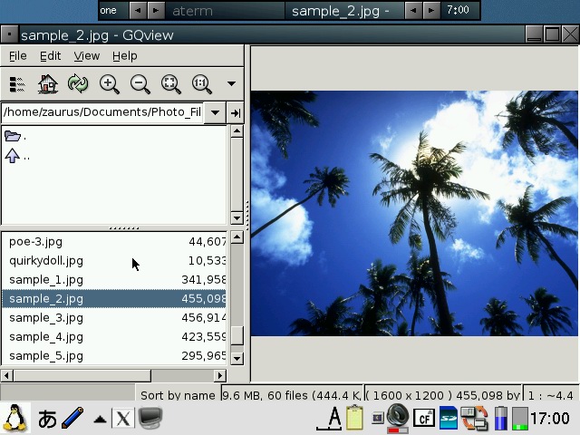 A second image, pdaXqtrom apps, is also provided as an add-on with the applications listed below pre-installed and configured. The pdaXqtrom base and application images are available from the following location: pdaXqtrom images In addition, there also are a few special feeds for all the tested applications. The base and apps images are build from these feeds. The base image can be used with the pre-configured application image, or individual applications can be separately installed from the apps feed using the default Sharp installer. The pdaXQtrom compressed images can be installed to anywhere you like. Basically, put them where ever you have the space for it. There are three different formats to choose from: cram, squash and tgz. The cramfs compressed images will work for everyone. In order to use the squashfs images, you will need to install a squashfs kernel module first. The advantage of squashfs over cramfs is that it has better compression and thus is smaller. The last option is a compressed tarball. If you don't want to use compressed loop back images but want to extract the files, then you can use the tgz files. However, make sure the destination for the install is an ext2 or ext3 formatted filesystem if you use the tgz file. For the cramfs/squashfs images, the filesystem type does not matter. To install, copy the files you want to install and the install script (inside pdaXqtrom-install.zip) to the destination location. Make sure they are all in the same directory and then do the following: