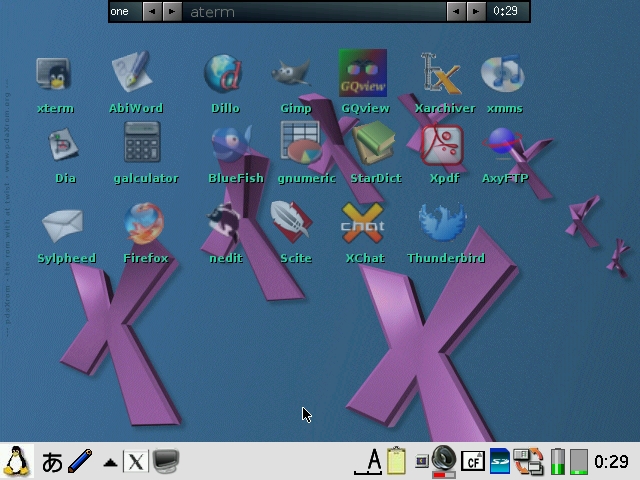 The applications for pdaXqtrom are mostly the same version as the ones from pdaXrom. However, I tweaked and hacked a few of them to make them more user-friendly.