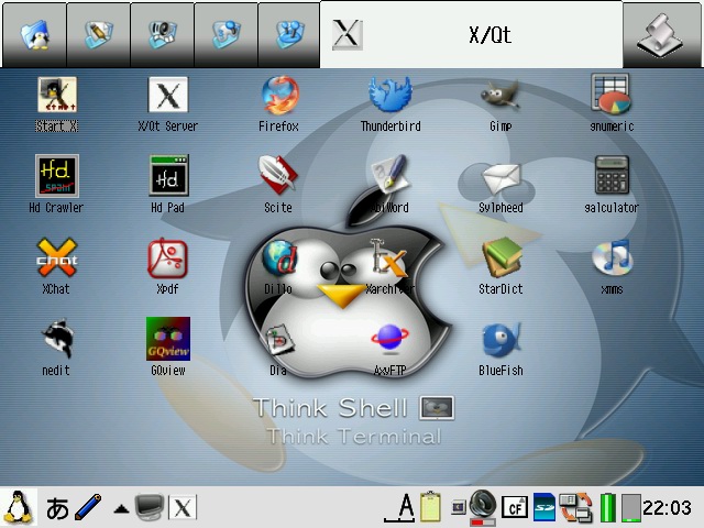 PocketWorkstation can also be run under pdaXqtrom just like with the X/Qt jumbo package if the add-on deblauncher package is installed. There are also some additional tools in the tools directory on the base image: